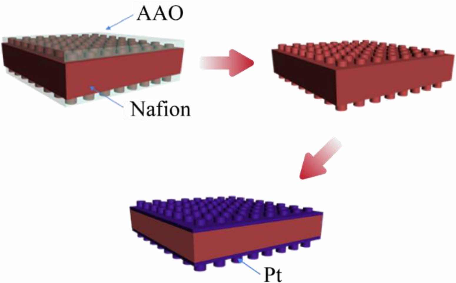 Figure 2 Schematic illustration for the fabrication of the IPMC with the Nafion membrane nanorod-imprinted by TIL. |