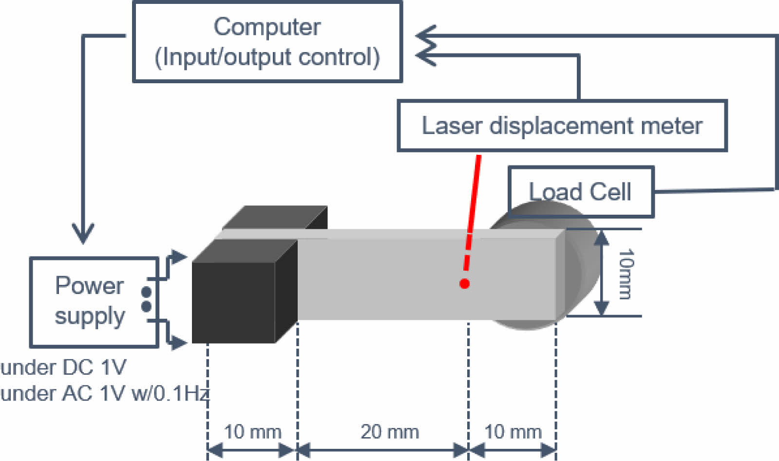 Figure 3 Apparatus to measure the displacement and driving force of IPMC. |