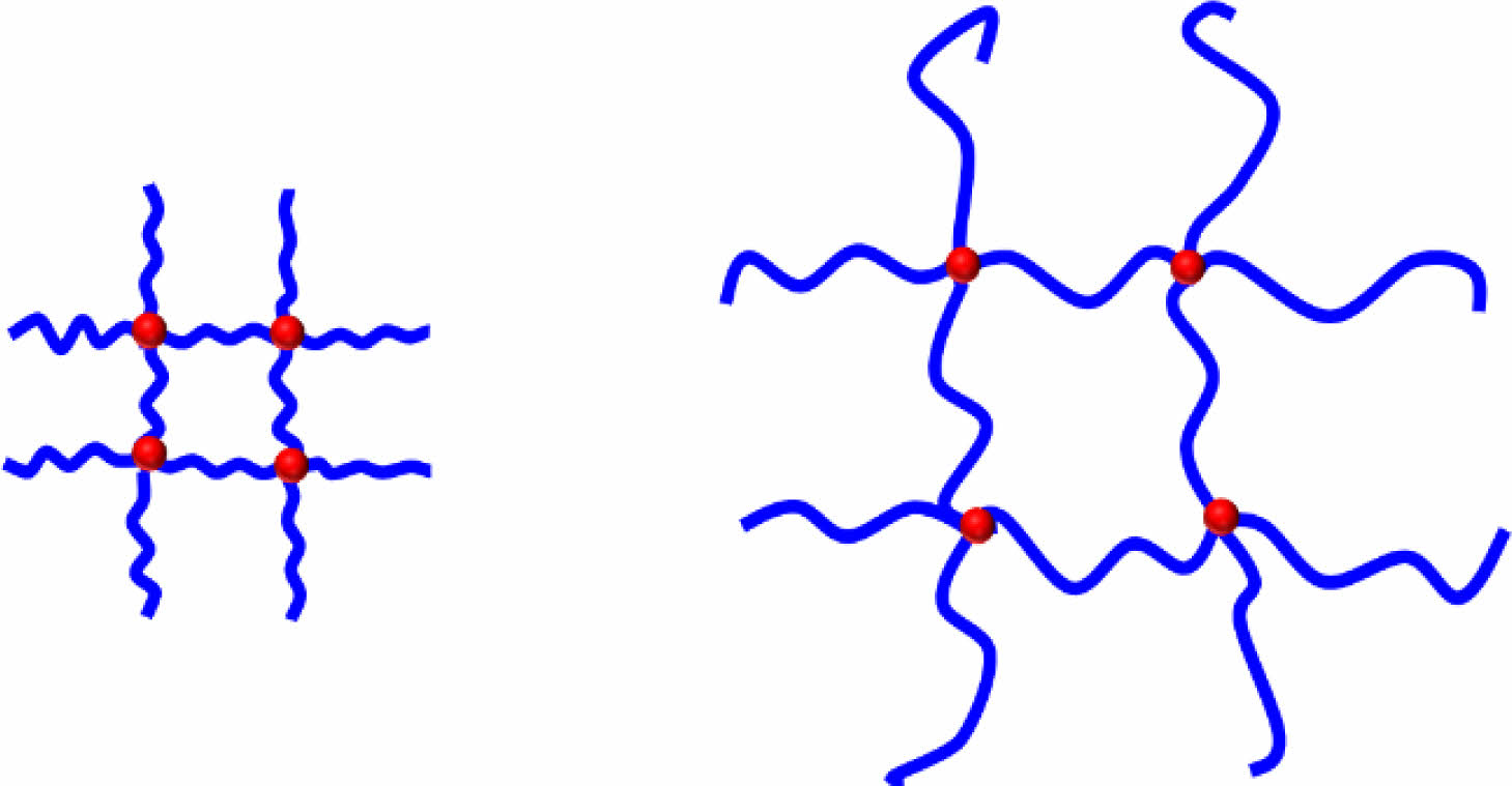 Figure 7 Schematic representation of cured PBA acrylic resin with different molecular weights. |