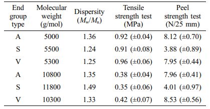 Keywords: acrylic resin, end-functionalization, crosslinking, tensile strength, peel strength.