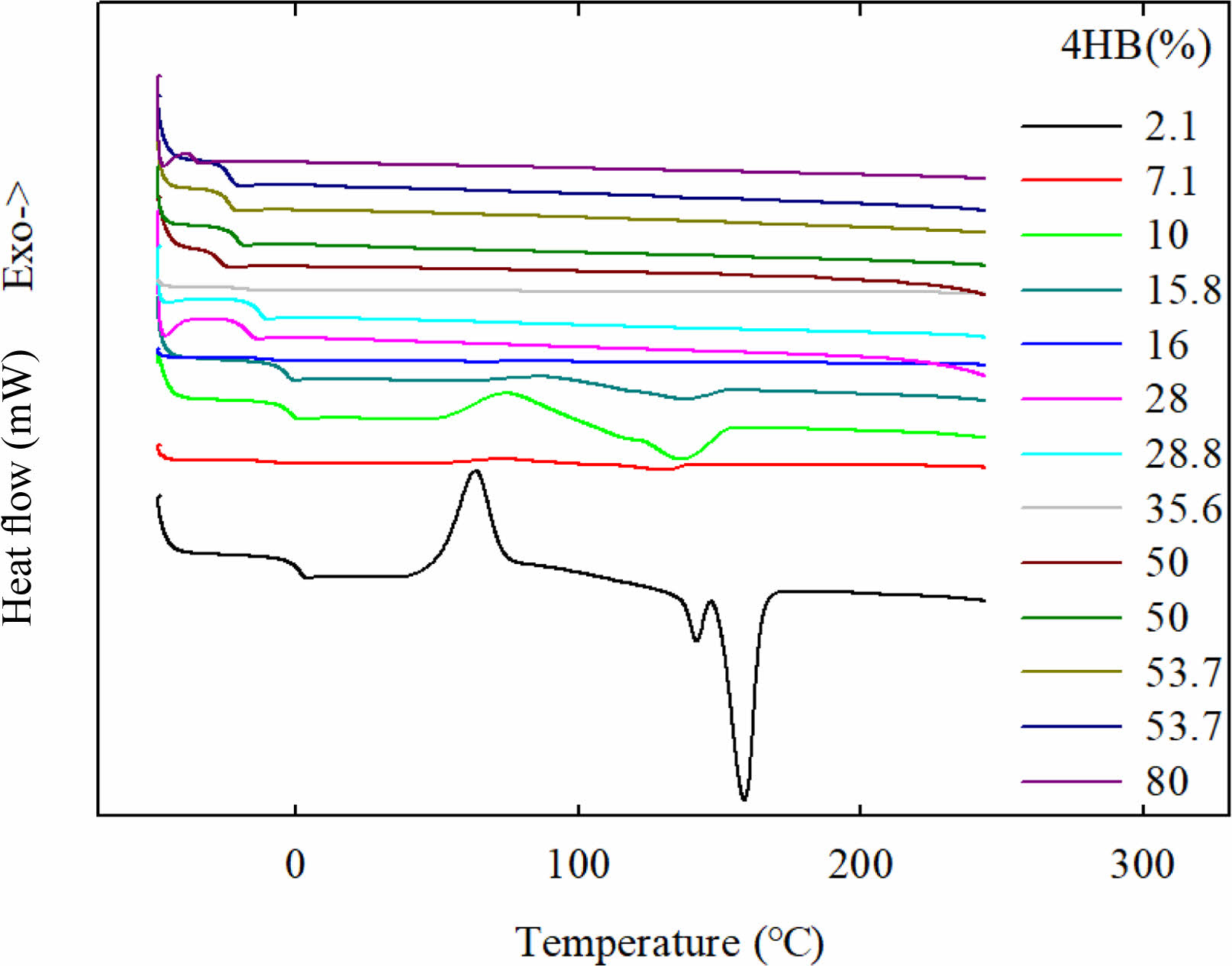 Figure 4 DSC thermograms of P(3HB-co-4HB). |