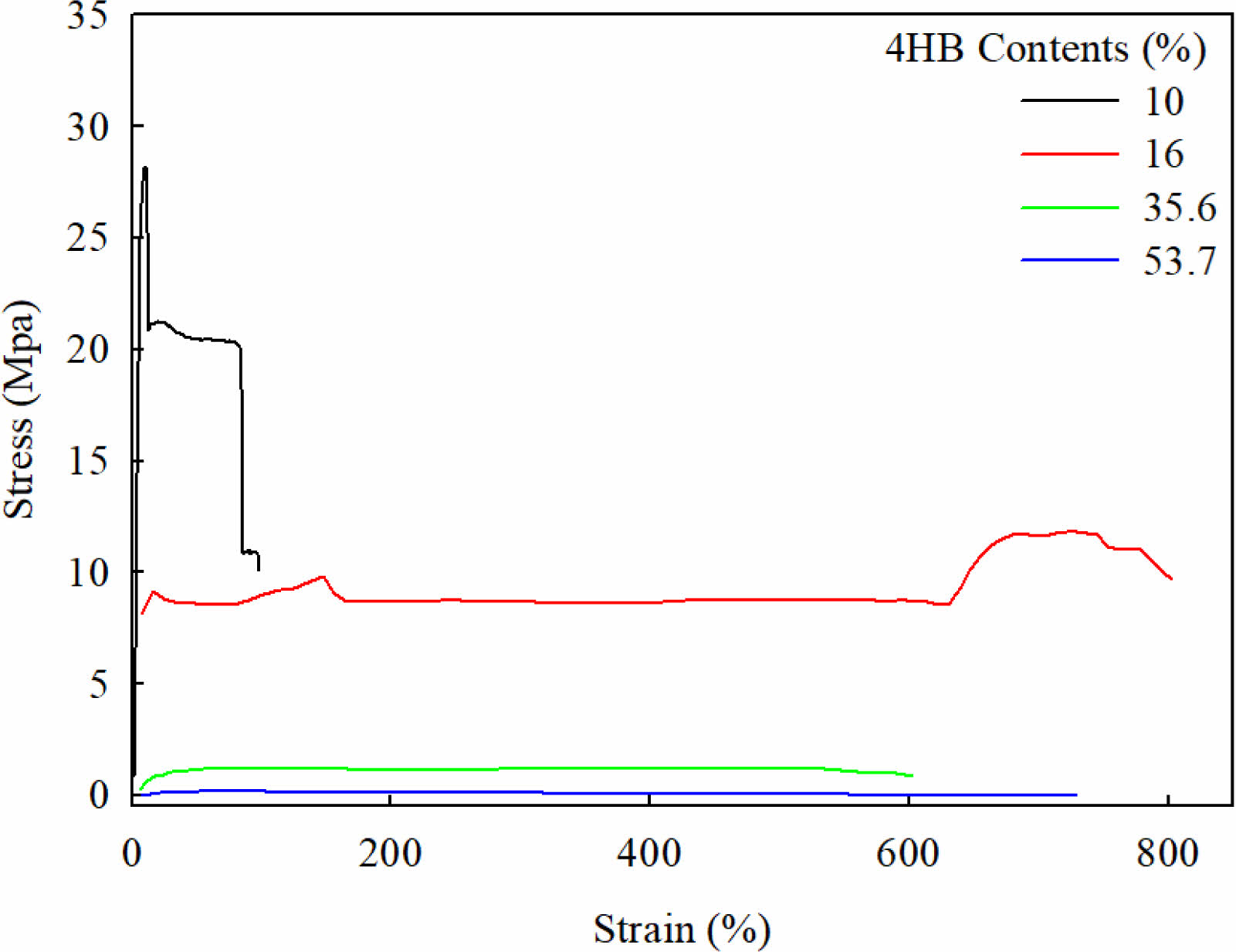 Figure 10 Stress-strain curves of P(3HB-co-4HB). |