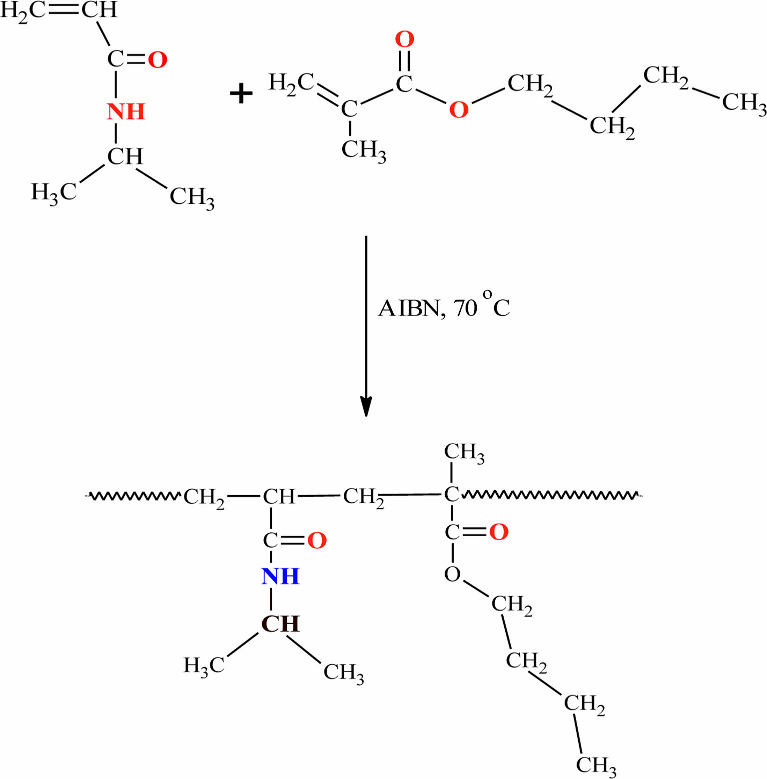 Materials. Synthesis of poly(N-isopropylacrylamide-co-n-butylmethacrylate) was achieved at the laboratory. NIPAM and n-BtMA monomers were purchased and used as received by Sigma-Aldrich, an American company. 2,2'-Azobis(2-methylpropionitrile) (AIBN) (Sigma-Aldrich, 98%) was used as free radical initiator. All of the other chemicals used were of analytical purity and used as received commercially.