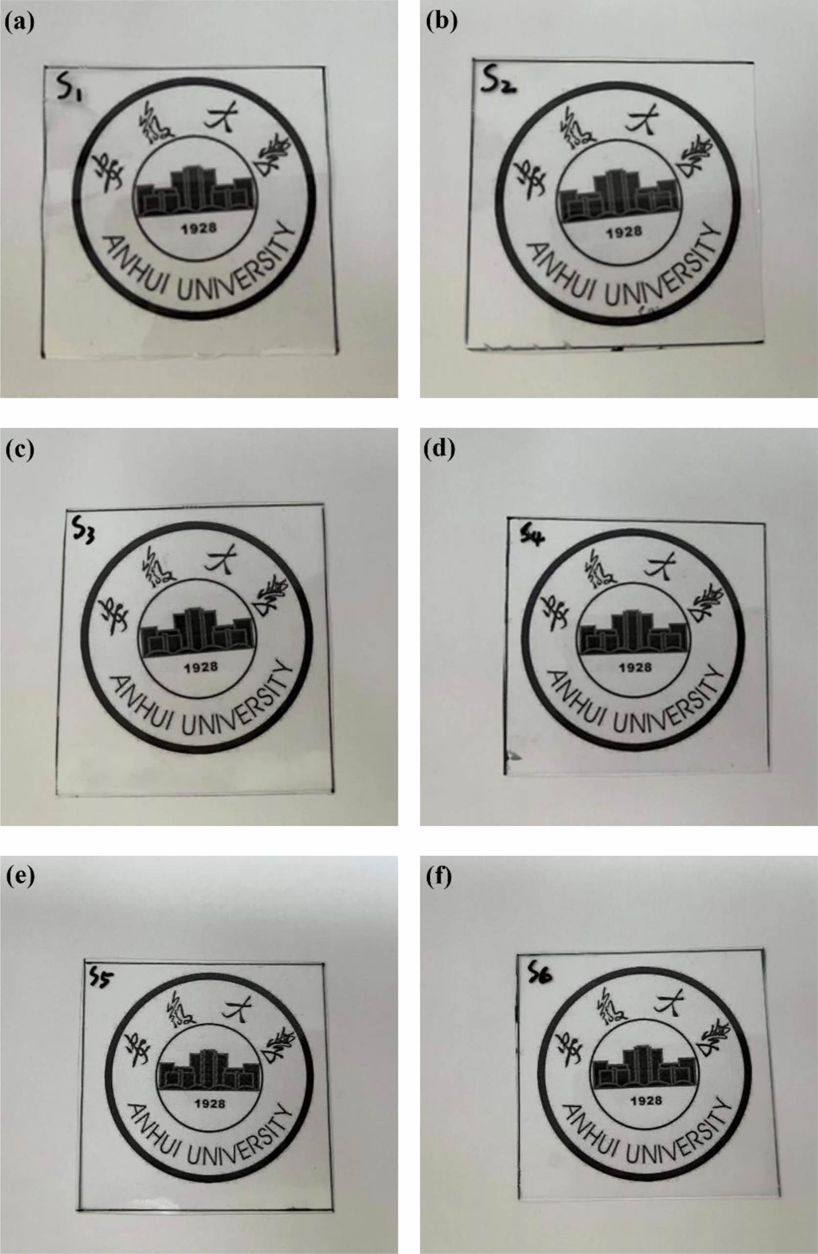 Figure 7 Photograph of copolymer films of (a) S1; (b) S2; (c) S3; (d) S4; (e) S5; (f) S6. |