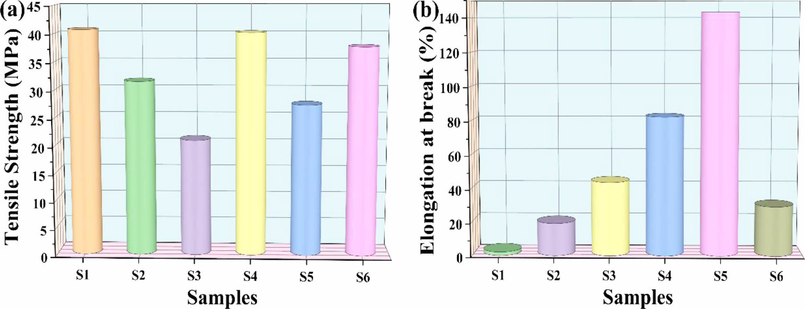 Figure 8 (a) Diagram of relationship between tensile strength and sample ratio (b) Elongation at break with sample ratio. |