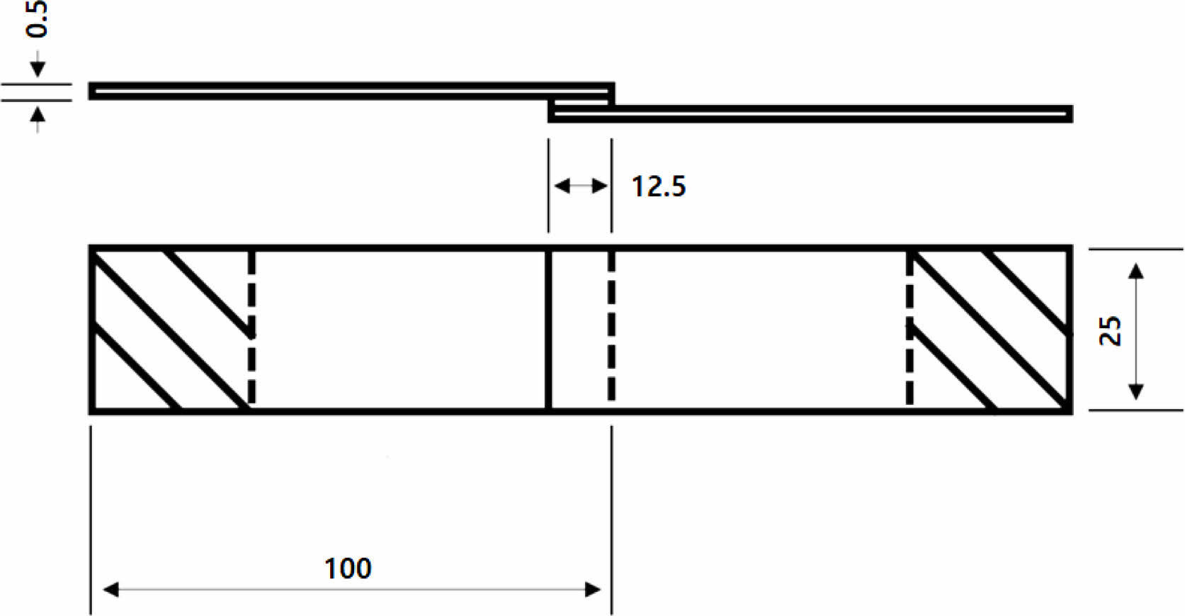 Figure 1 Schematic representation of lap shear specimen according to ISO 4587 standard. |