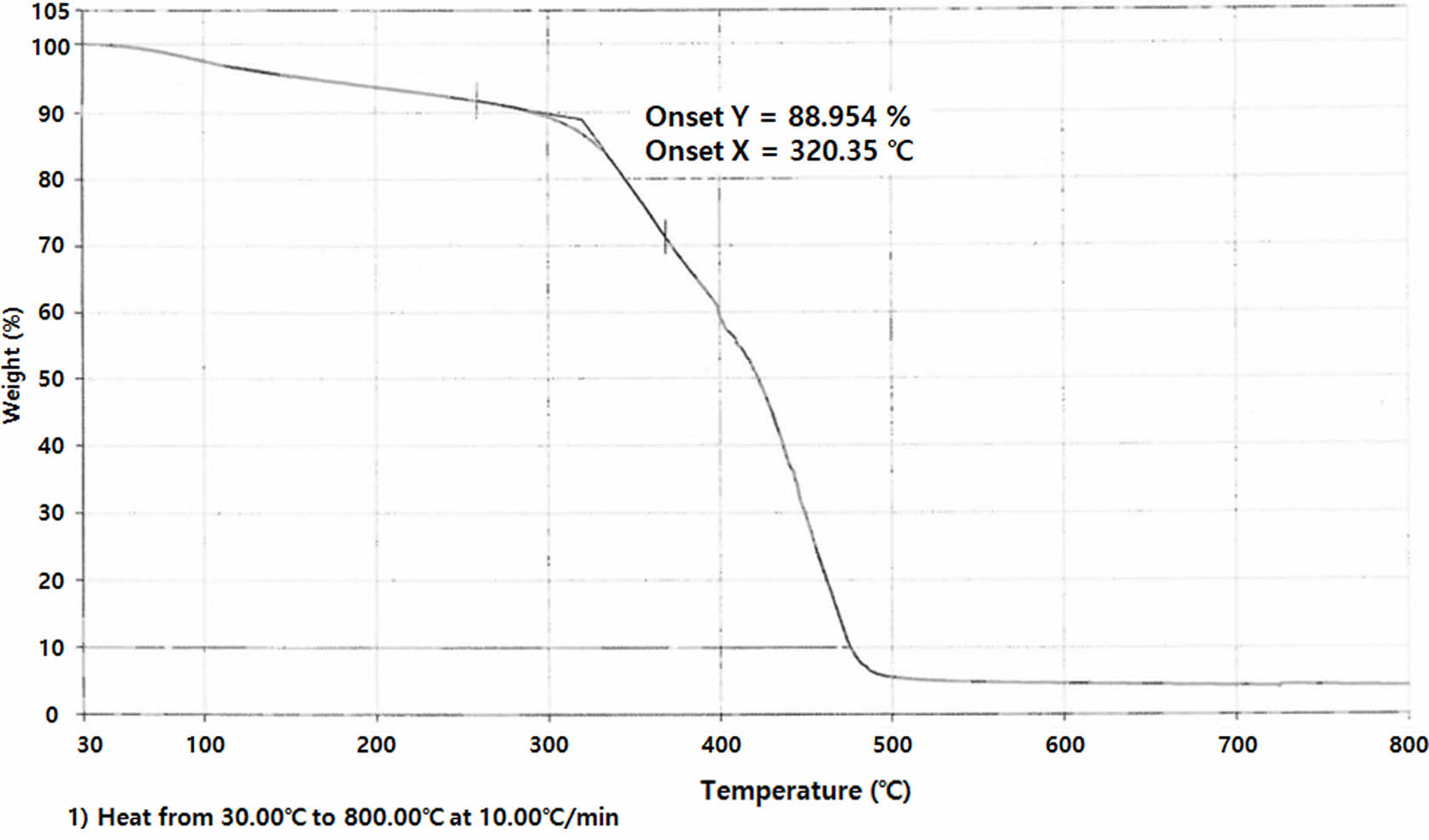Figure 8 TGA spectrum of cured adhesive specimen of F-Or |