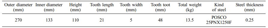 Preparation of Dot-bonded Stator. Laminated non-oriented electrical steel sheets of the stator were fastened by the dot bonding methods using F-ISB. As the stator design and bonding condition are proprietary, their information was kept confidential. In Table 2 however, physical dimensions, fastening methods, steel specifications, lamination thickness, and applications are reported for a better understanding of the stator made.