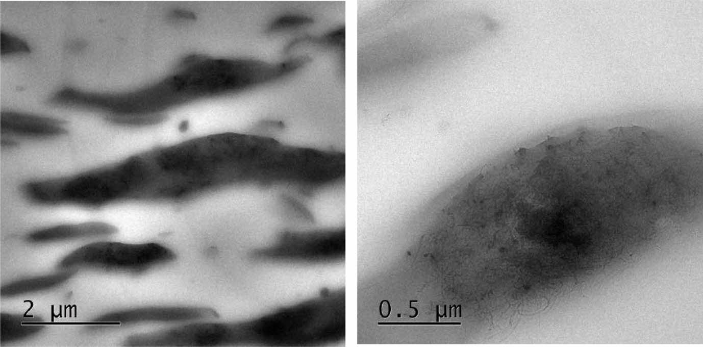 Figure 8 TEM images of PLA/PBAT/BPO/MWNT (Rv=4.0±0.7 μm). |