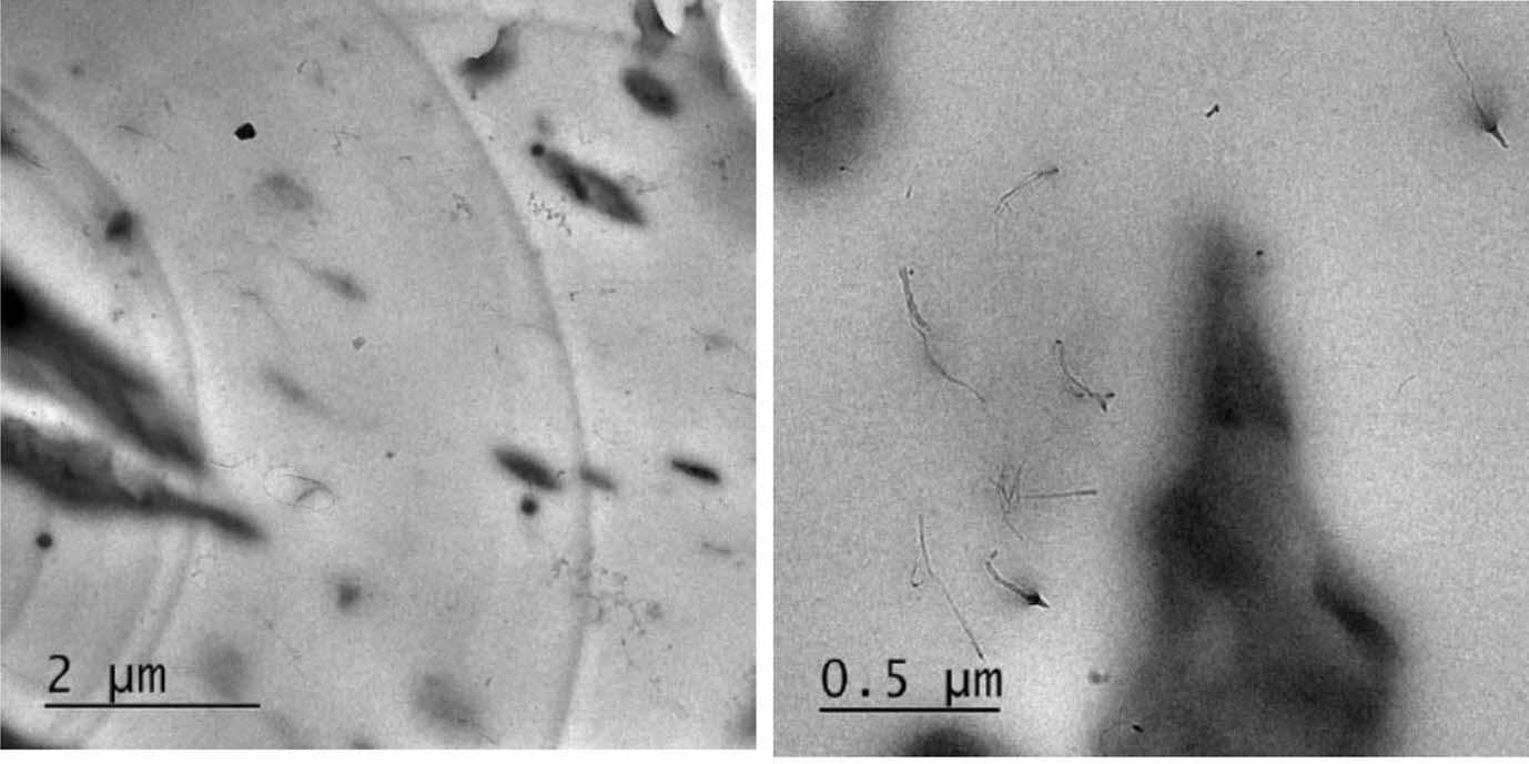 Figure 9 TEM images of PLA/PBAT/AIBN/MWNT(Rv=2.3±0.1 μm). |