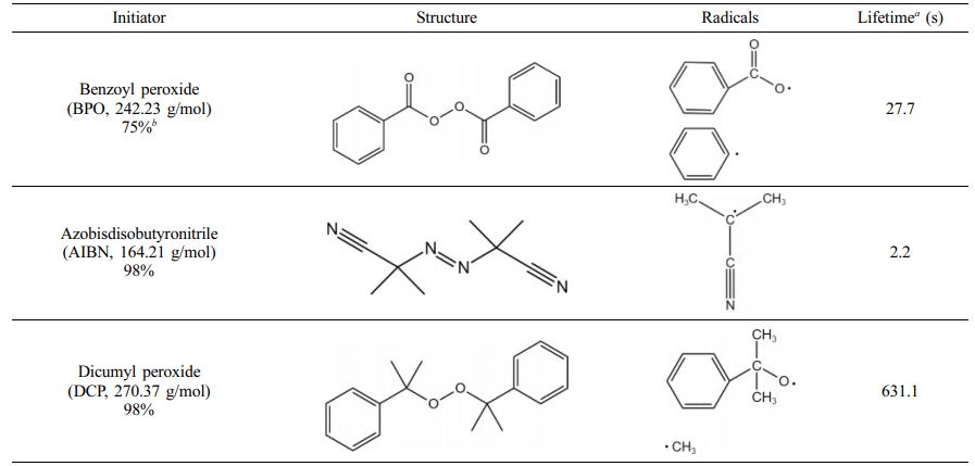 Table 1 Characteristics of Radical Initiators Used in This Study |