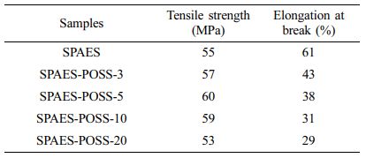 Tensile Strength and Elongation at Break Values of SPAES-POSS Composite Membranes