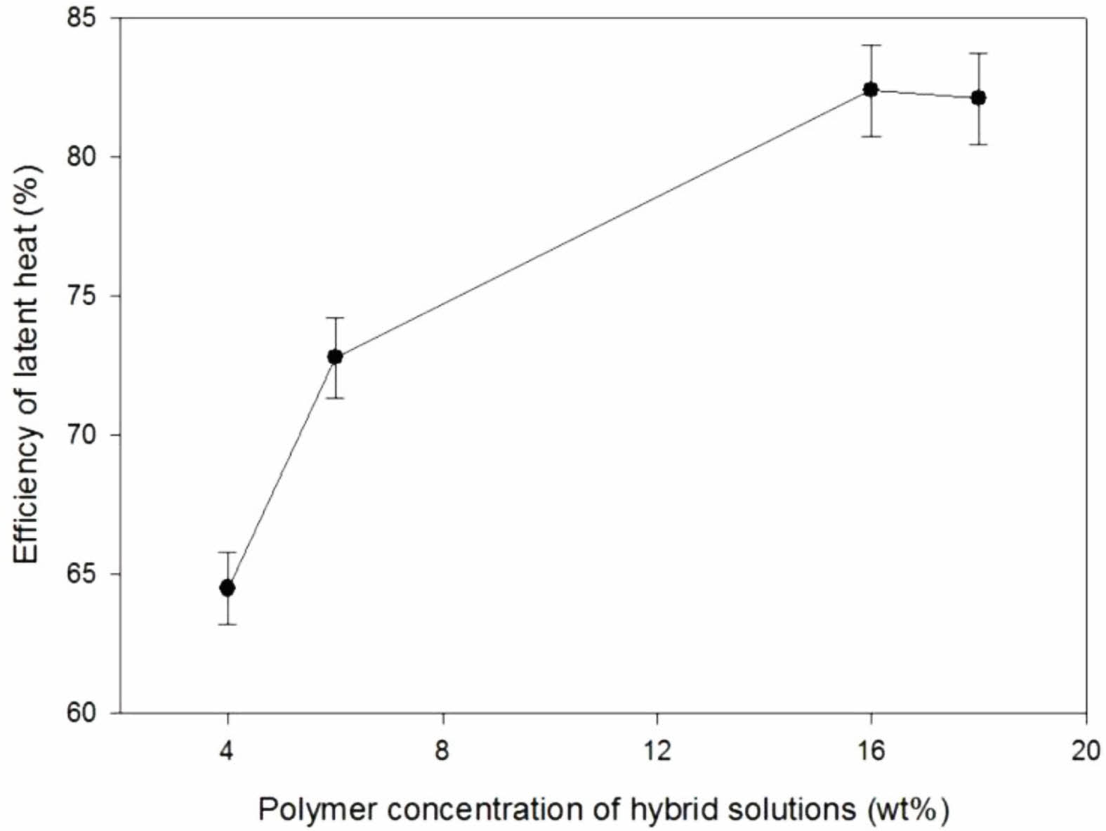 Figure 4 Effect of polymer concentration in hybrid solutions on efficiency of latent heat for ISSFs with 20 wt% of n-octadecane. |