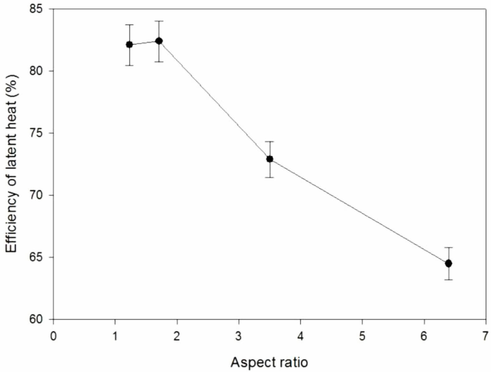 Figure 5 Effect of aspect ratio of n-octadecane domain on efficiency of latent heat for ISSFs with 20 wt% of n-octadecane. |
