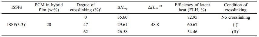 Table 2 Efficiency of Latent Heat according to the Degree of Crosslinking in ISSFs |