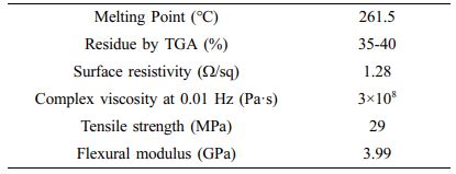 본 연구에서는 전자파 차폐용 고분자 복합소재 시장에서 최고 물성으로 알려져 있는 미국 RTP사 제품의 차폐 특성을 보이면서도 사출성형 등이 가능한 복합체를 개발하고자 한다. 이를 위해서 우선 RTP 복합체의 기본적인 내용을 파악하고자 하였으며, 이를 위해 DSC를 이용하여 융점을 확인한 결과 261 oC를 나타내었고, 적외선분광기(Perkin Elmer, Spectrum 1000, FTIR) 스펙트럼의 1723 cm-1에서 카르보닐기(C=O), 3650 cm-1에서 아민기(NH)를 나타내는 결과로부터 나일론66으로 유추하였다. Table 1은 RTP 제품의 분석 결과를 요약한 것이다.