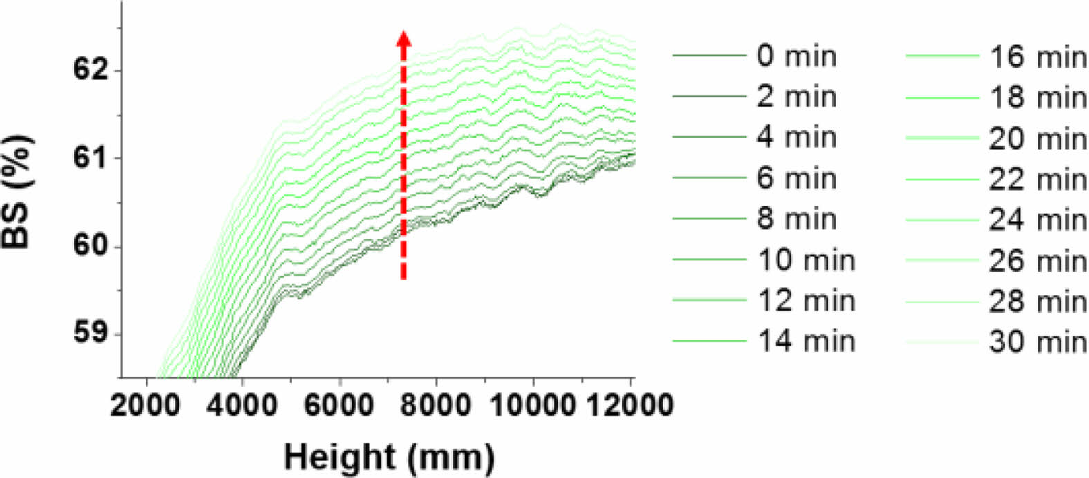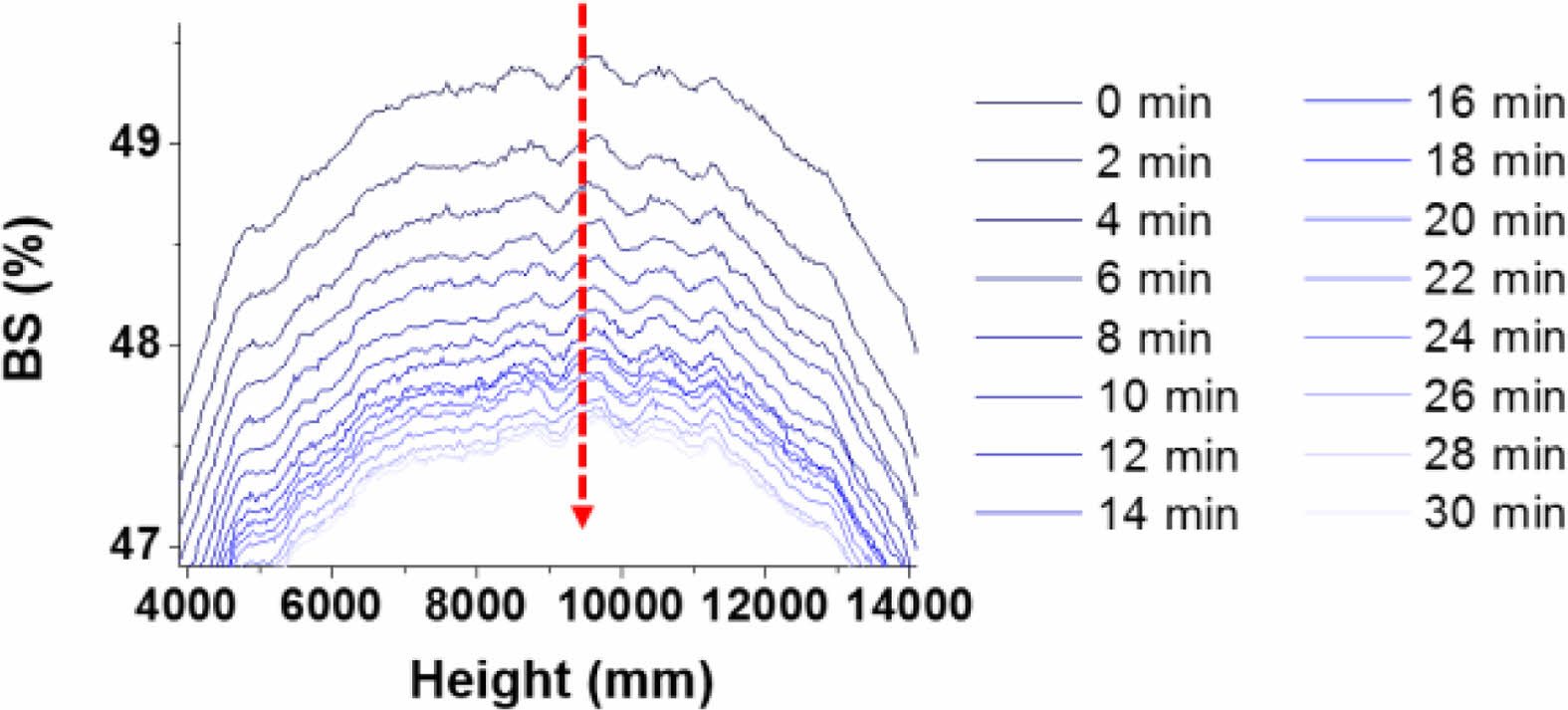 Figure 6 NIR backscattering results for the emulsion S1 within the initial 30 min. |