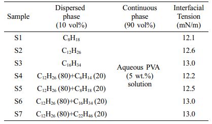 Table 1 Emulsion Formulations and Interfacial Tensions between the Dispersed and Continuous Phases |