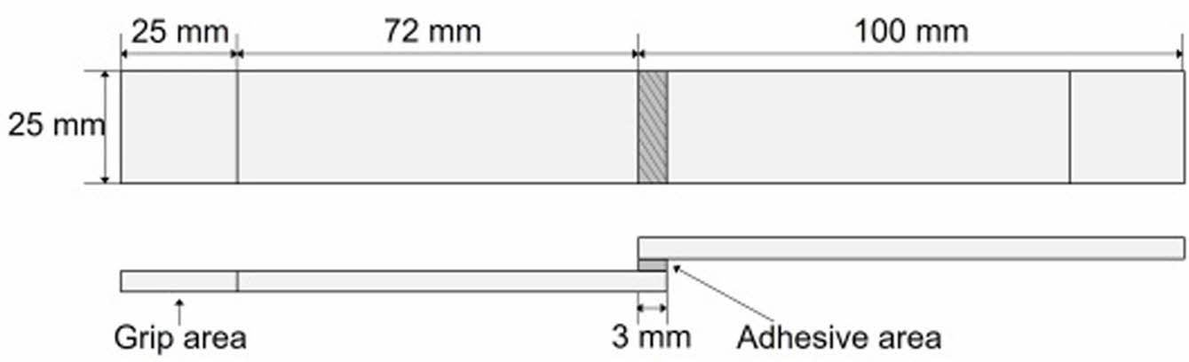 Figure 4 Dimensions of specimen for single-lap shear tests. |