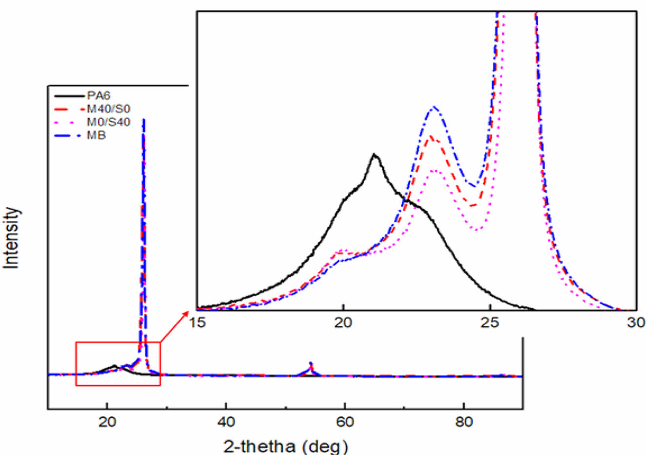 Figure 5 X-ray diffraction of nylon 6 and nylon 6/EG composites |