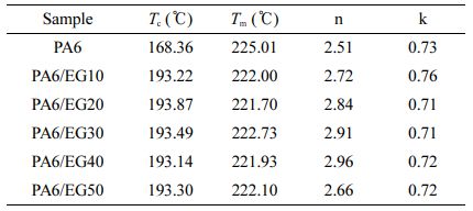 Table 1 Crystallization, Melting Temperature and Avrami Parameters of Nylon 6/EG Composites |
