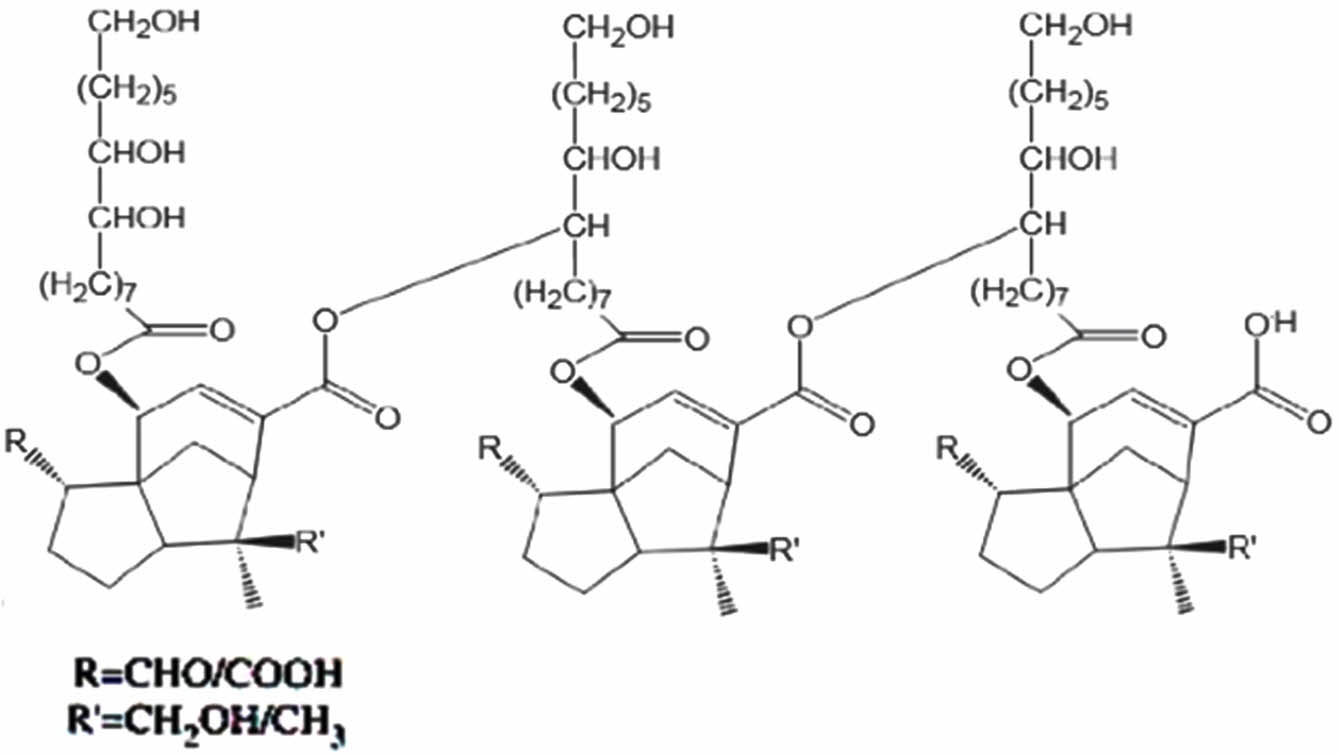 Shellac is a natural, nontoxic, biocompatible, and biodegradable polymer that is generally recognized as a safe substance by the FDA. Figure 1 shows the molecular structure of the shellac. As shown in the figure, shellac is known as a natural polymer with acidity. The polymer is a resinous exudate from the Laccifer lacca insect inhabiting tropical forests. Commercially, shellac is available as an alkaline aqueous solution, which is applied as an enteric or sustained release coating polymer. Formerly, shellac was used mostly as an alcoholic solution. In recent years, it has gained considerable attention as a biomaterial with diverse applications in tissue engineering owing to its low cost, large-scale availability and biocompatibility.19-21
