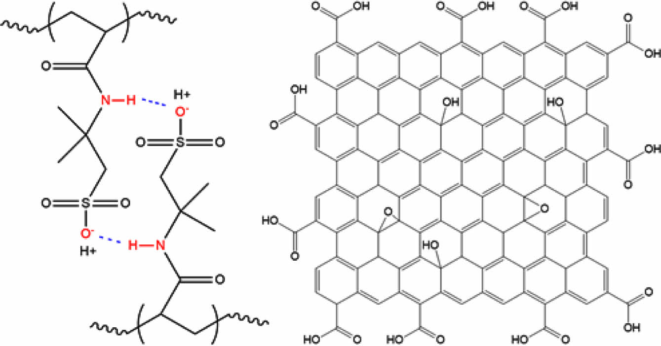Figure 1 Chemical structures of PAMPSA (left) and GO (right). |