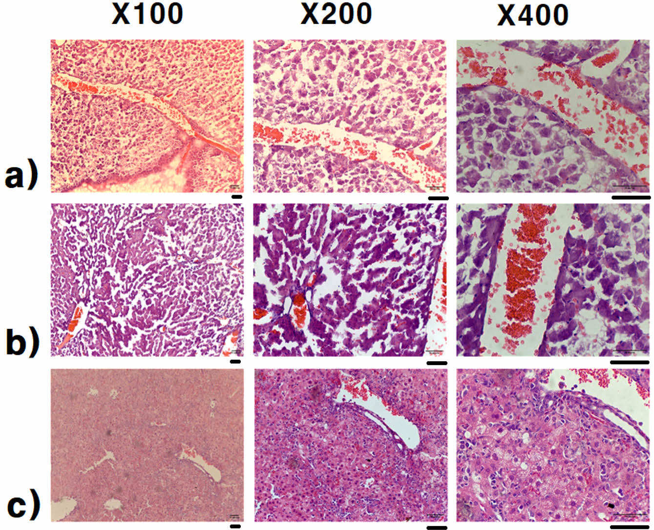 Figure 5 H&E stained slice microphotography of mouse liver: (a) polyvinyl alcohol (PVA)/polyethylene glycol (PEG) resin as a commercial resin; (b) PVA/boric acid resin; (c) PVA/boric acid/NaOH resin, scale bar: 50 µm. |