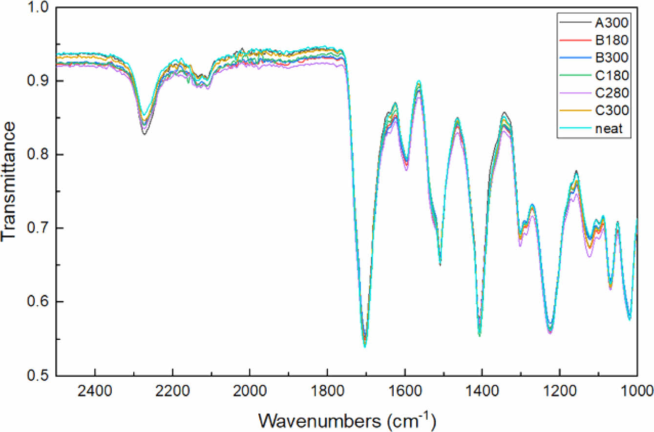 Figure 1 FTIR spectra of foams with expandable graphite. |
