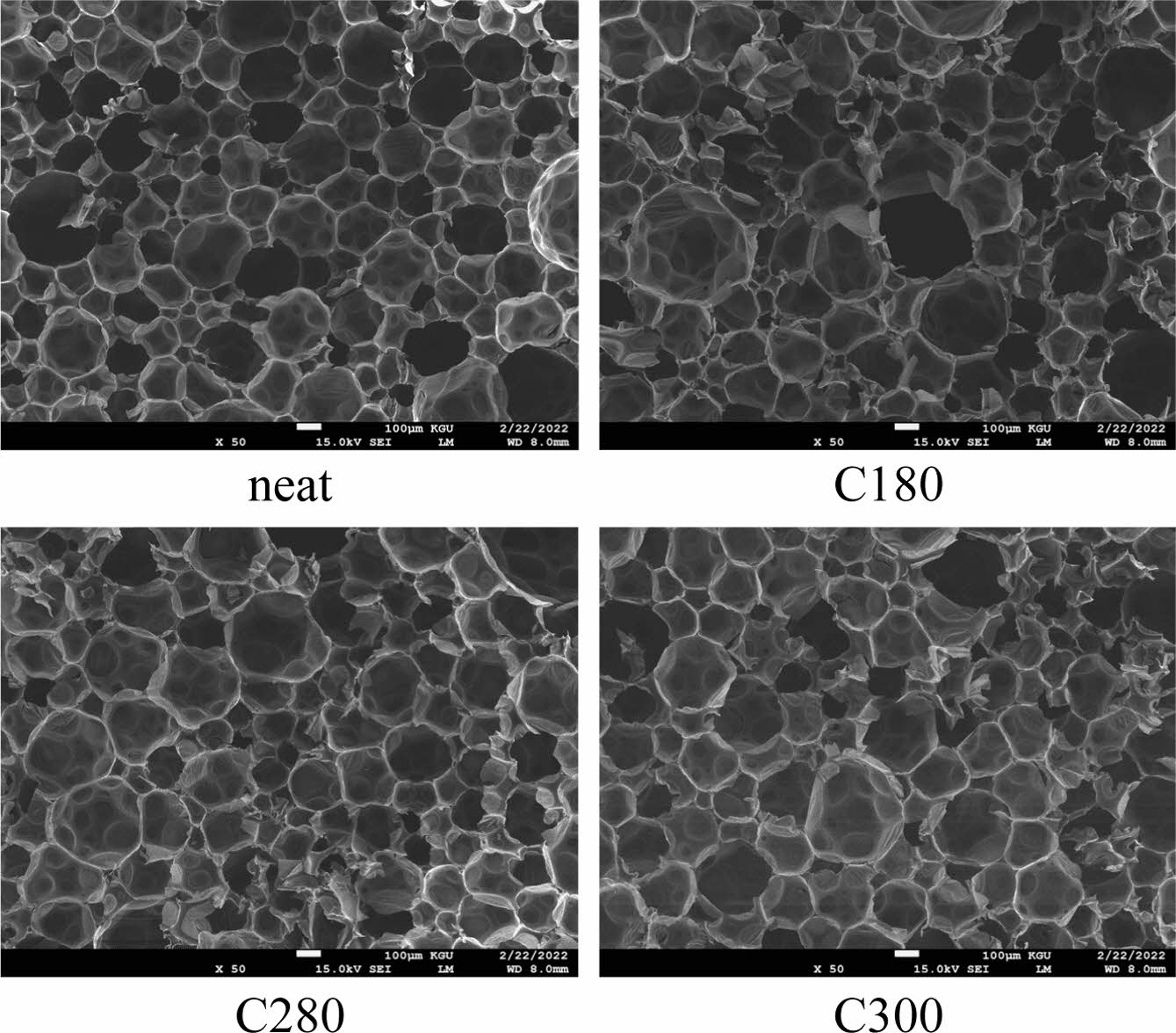 Figure 4 Cell morphology of foams with expandable graphite. |