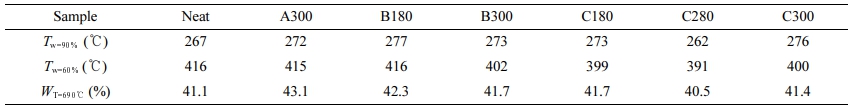Figure 2 Thermogravimetric analysis of foams with expandable graphite. |