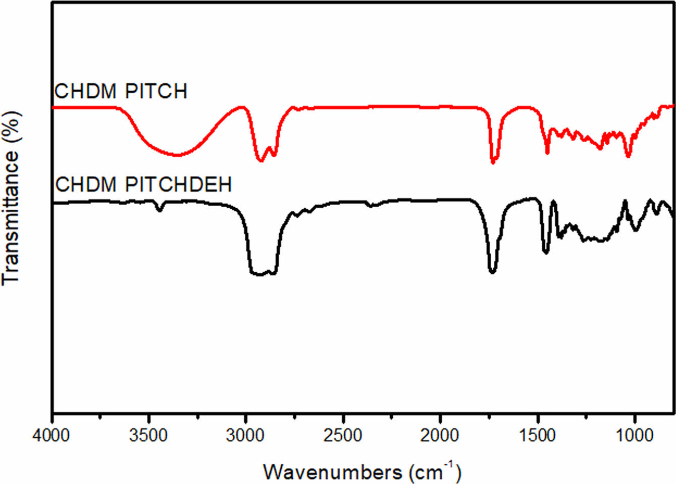 Figure 4 FTIR spectra of 1,4-Cyclohexanedimethanol pitch and CHDM PITCHDEH plasticizer. |