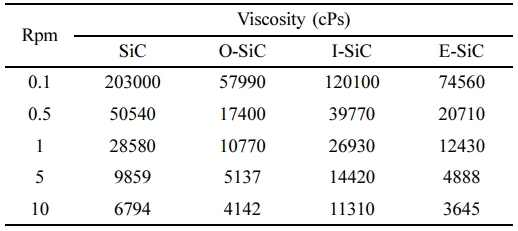 Table 2 Viscosity of Epoxy Adhesives Filled with 30 wt% SiC Modified with, Oleic Acid (O-SiC), Imidazole (I-SiC), and Epoxy Silane (E-SiC) |