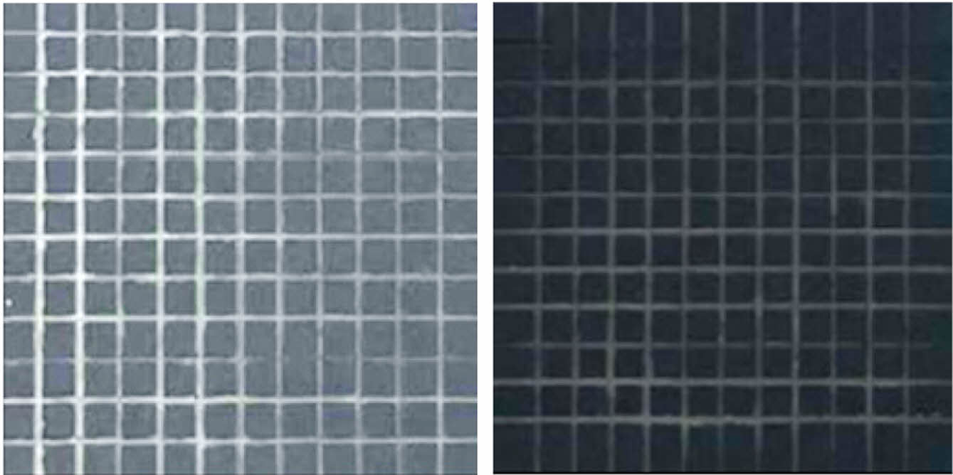 Cross-cut test of ethylcellulose (left) and Si-CNF (right) binder.