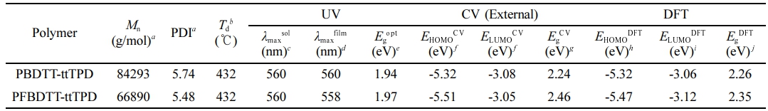Table 1 Optical and Electrochemical Properties of PBDTT-ttTPD and PFBDTT-ttTPD |