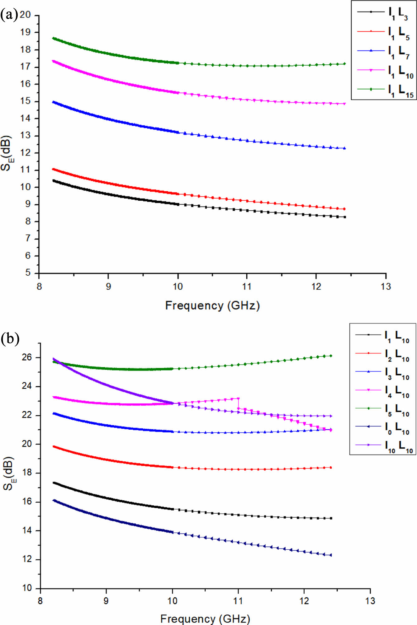 In order to study the shielding mechanism, the total shielding efficiency is further decomposed into reflection loss (SER) and absorption loss (SEA), and the electromagnetic shielding efficiency is calculated by the following formula.