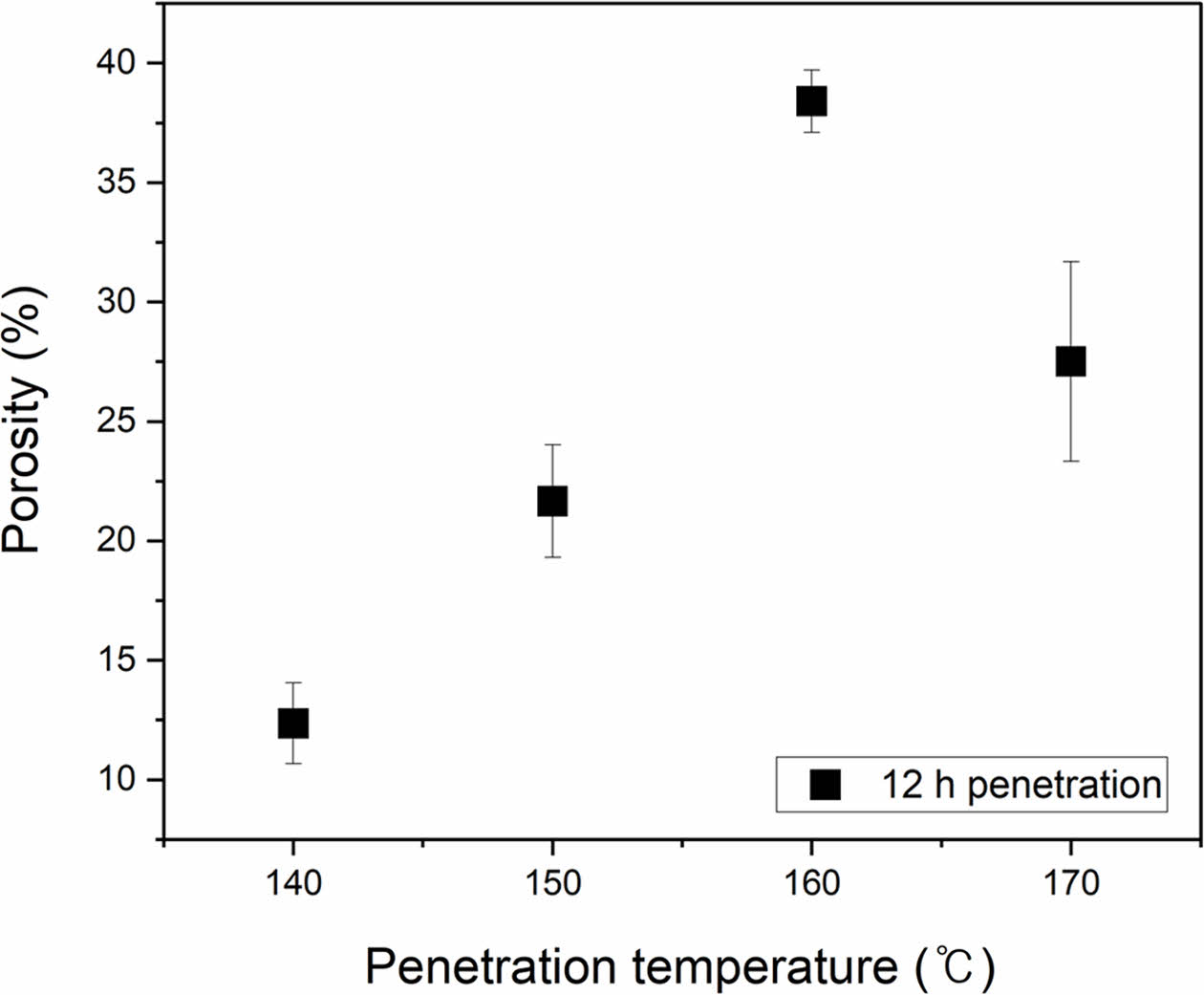 Figure 4 Porosity of PP membranes from different penetration temperatures. |
