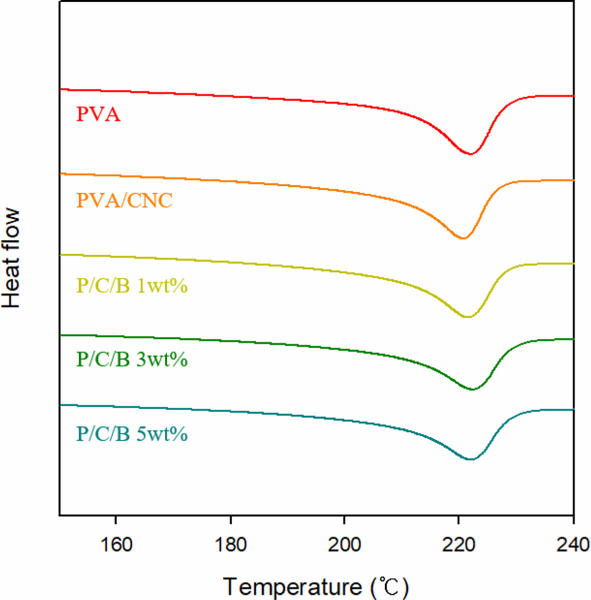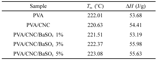 Thermal Data for the PVA/CNC/BaSO4 Scaffolds by DSC