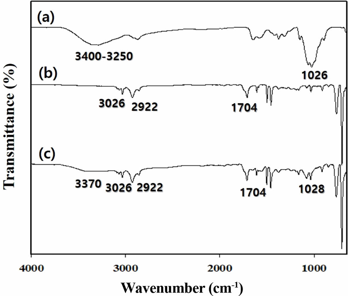 Figure 1 FTIR specta of (a) CS; (b) (St-AA)NP; (c) [(St-AA)NP]@CS. |