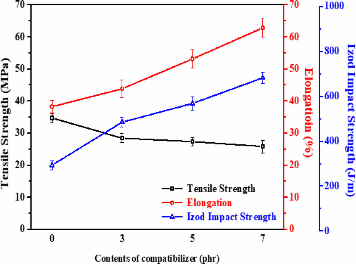 Mechanical properties of compatibilized PLA/PHA (70/ 30) blends.