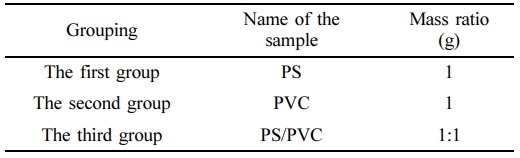 Material and Methods. Experimental Samples: Common waste plastics encountered in daily life include polyethylene (PE), polypropylene (PP), polystyrene (PS), polyvinyl chloride (PVC), and polyethylene terephthalate (PET). In studies of mixed waste plastics, utilizing pure plastics as substitutes for waste plastics can enhance the reference value of experimental outcomes. For this experiment, plastic samples were sourced as pure plastic pellets from Sinopec Yanshan Branch. The PS and PVC samples were processed using a crusher (Model DH-PC180, Luoyang Dihai Machinery Co., Ltd.), followed by the grouping of the experimental samples. The results of the grouping are presented in Table 1.