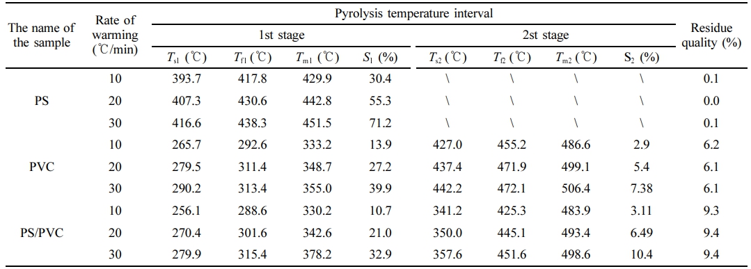 Table 2 Pyrolysis Characteristics of PS, PVC, and PS/PVC |