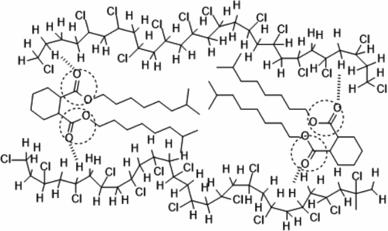 Figure 1 The interaction between DINCH plasticizer and PVC polymer chains. |