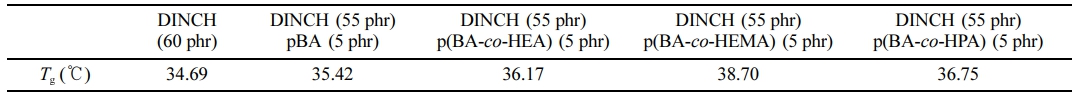 Table 3 Glass Transition Temperatures of Plasticized PVC Samples Containing DINCH and Various Acryl Oligomers |