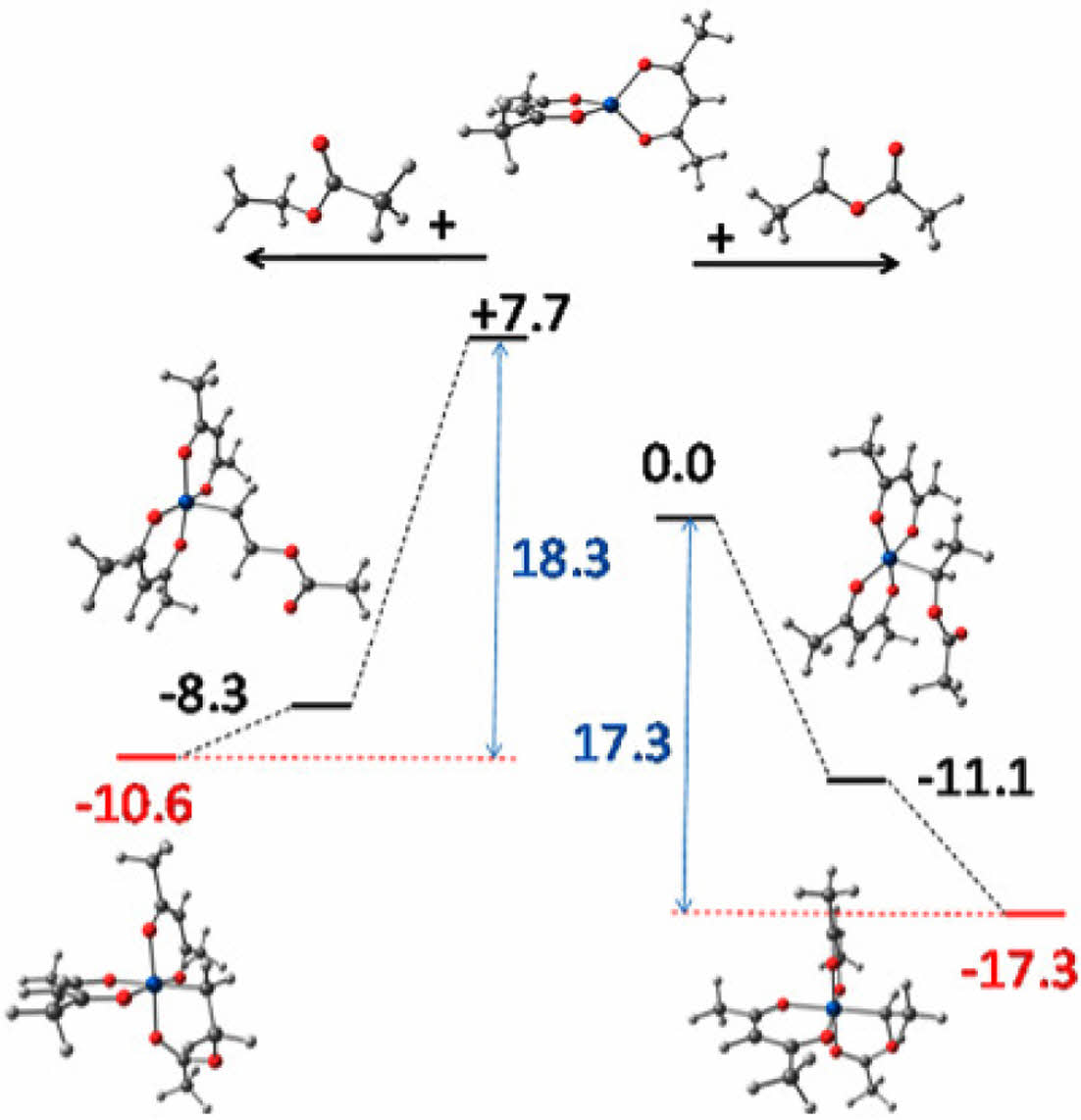 Figure 2 Relative BPW91* enthalpies and optimized geometries of the species implicated in the deactivation process of the T and H PVAc radical models by Co(acac)2. Reproduced with permission from Ref. 49, Morin, A. N. et al., Macromolecules, 2013, 46, 4303-4312. ©2013, American Chemical Society |