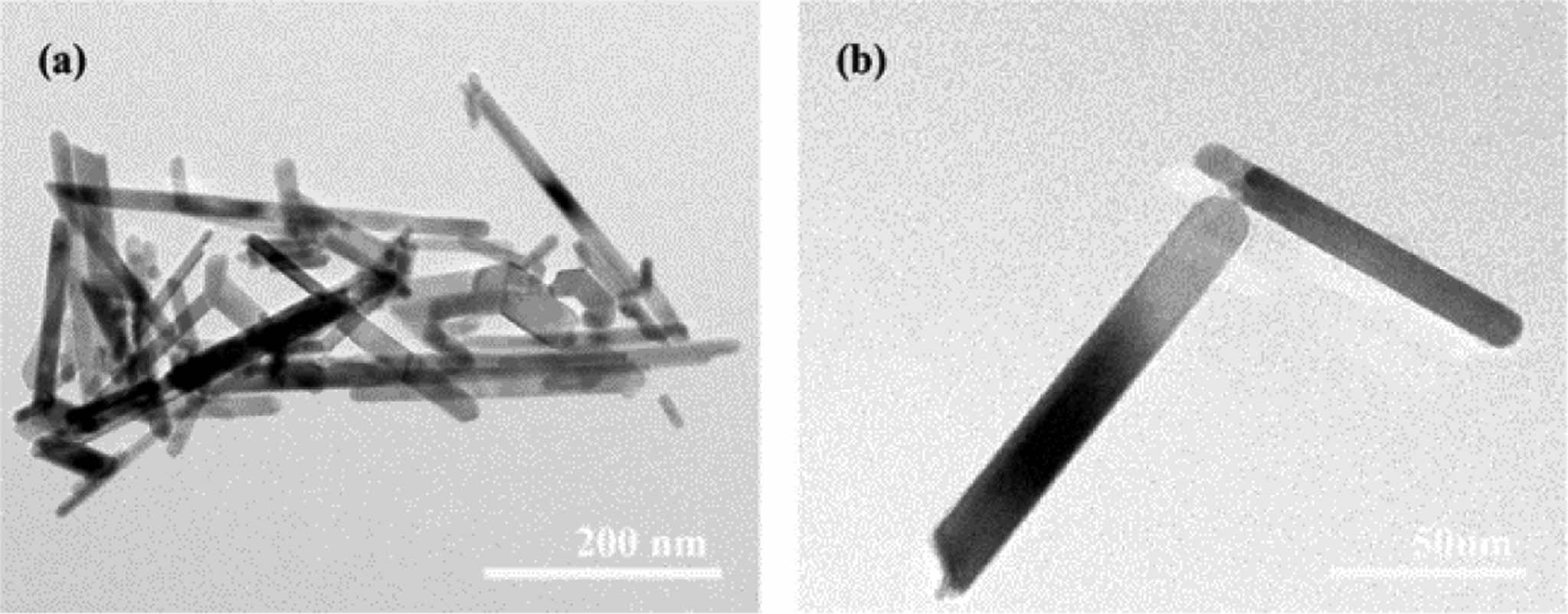 VR Changes of PMP/ATO Nanocomposites. The ATO used in this study was tin dioxide powder coated with a thin layer of electrically conductive antimony. As shown in Figure 1, it exhibited an acicular shape with a length of ~500 nm and a diameter of ~20 nm.