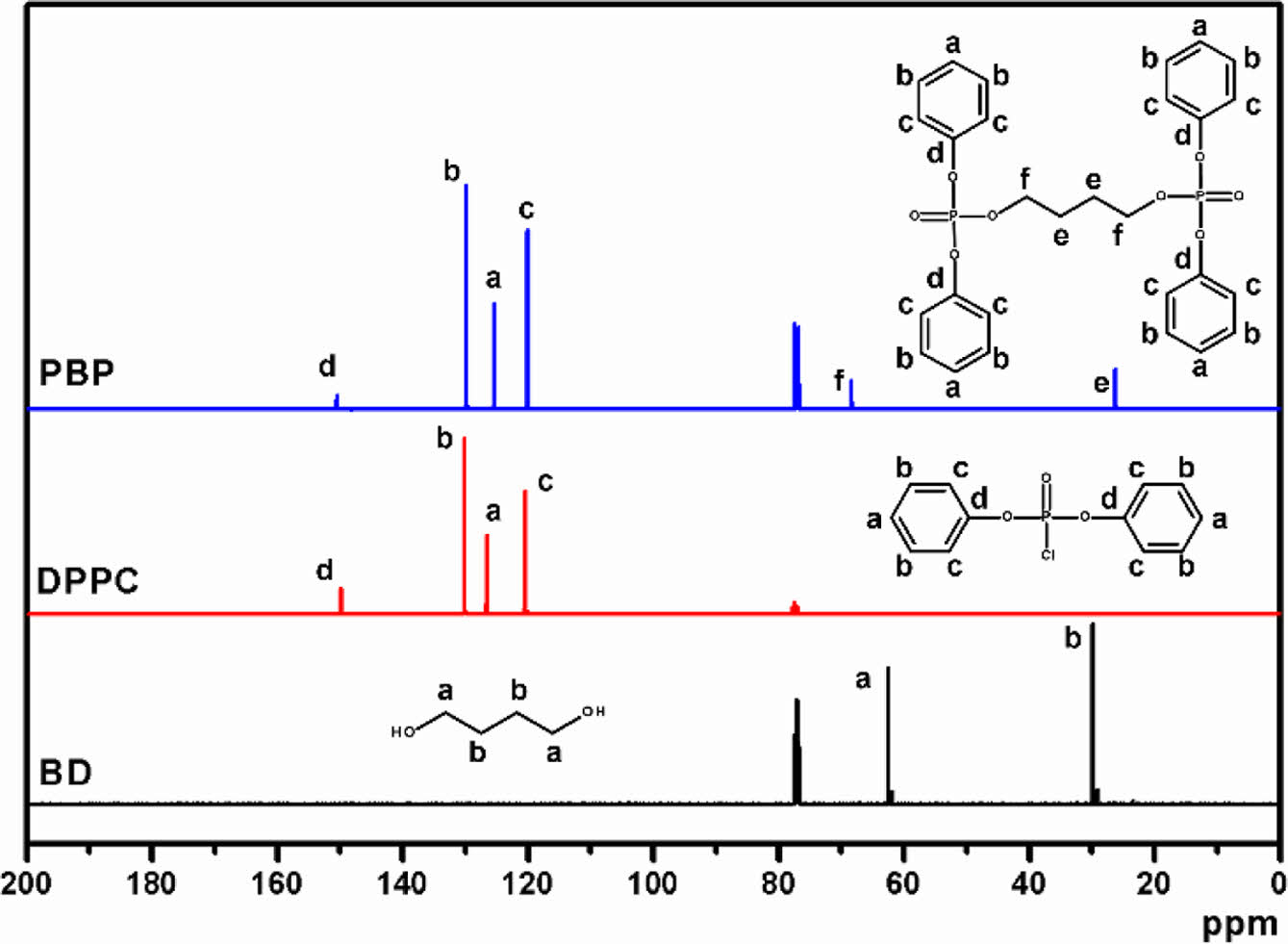 Figure 2 13C NMR spectra of BD, DPPC, and PBP. |