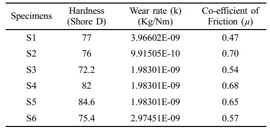 • Specimens S2 show the maximum coefficient of friction.