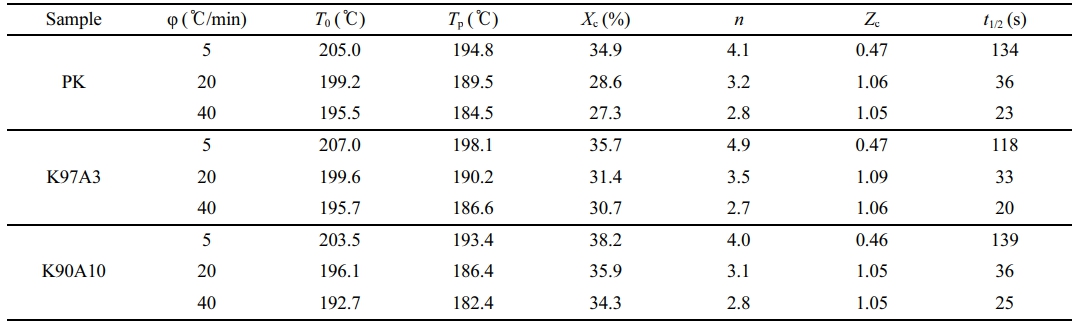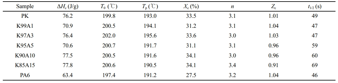 Summary of Non-isothermal Crystallization Behavior of PK/PA6 Blends Obtained from DSC Analysis at a Cooling Rate of 10 ℃/min