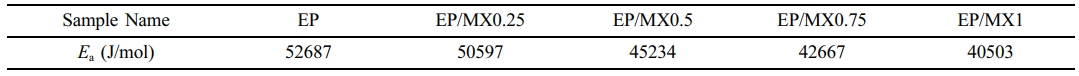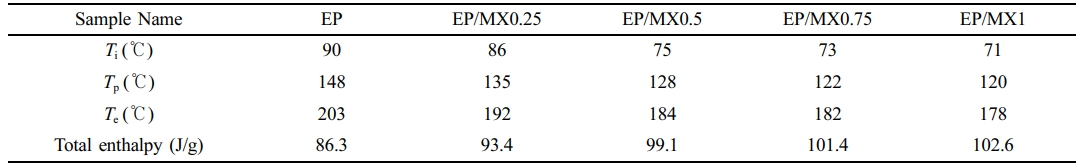 Table 1 Ti, Tp, Te and Total Enthalpy Values for EP, EP/MX0.25, EP/MX0.5, EP/MX0.75 and EP/MX1 Obtained by Calculating the Intercept Through T-β Extrapolation |